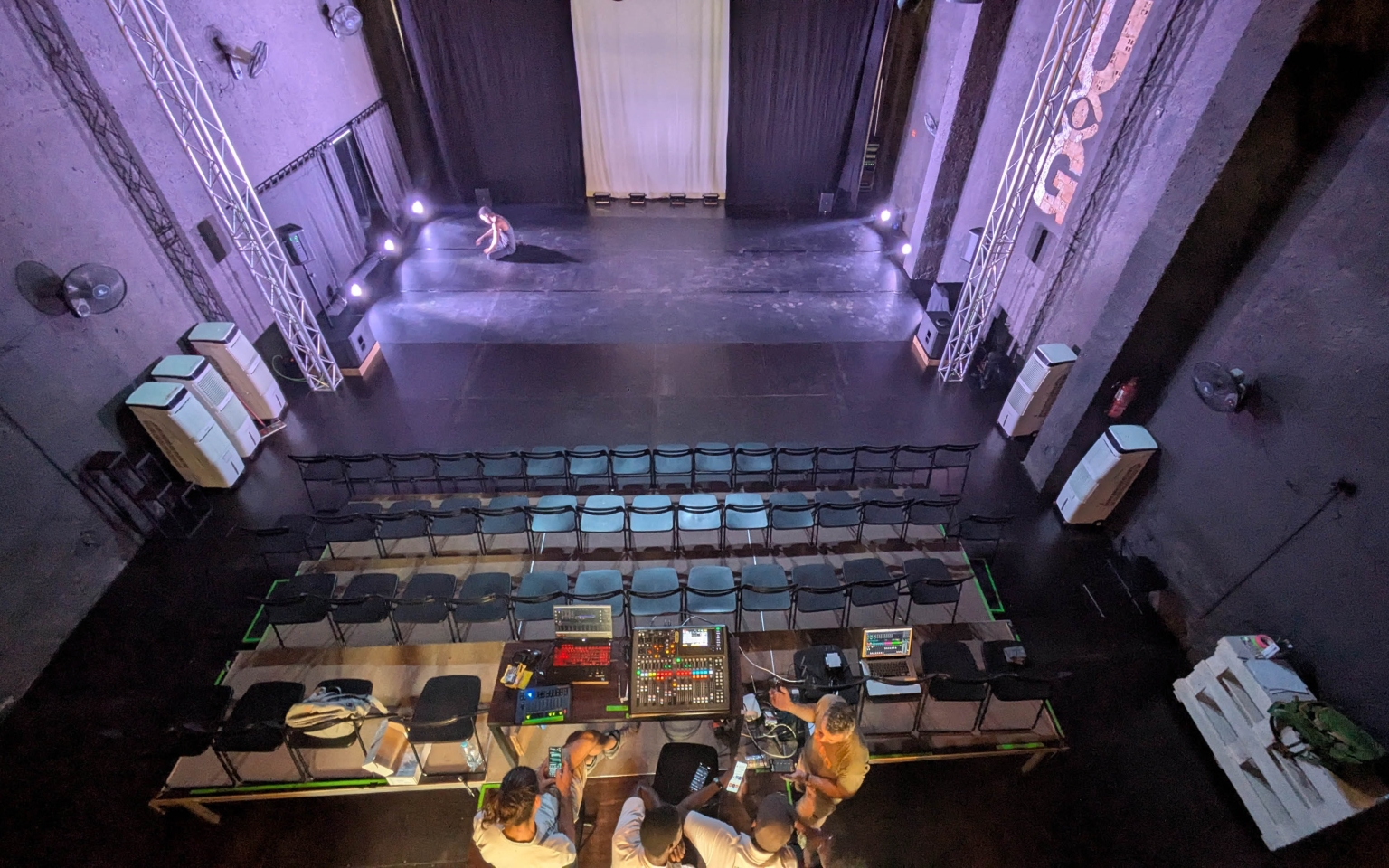 Auditório em formato de blackbox, equipado para acolher espetáculos, formações e eventos culturais